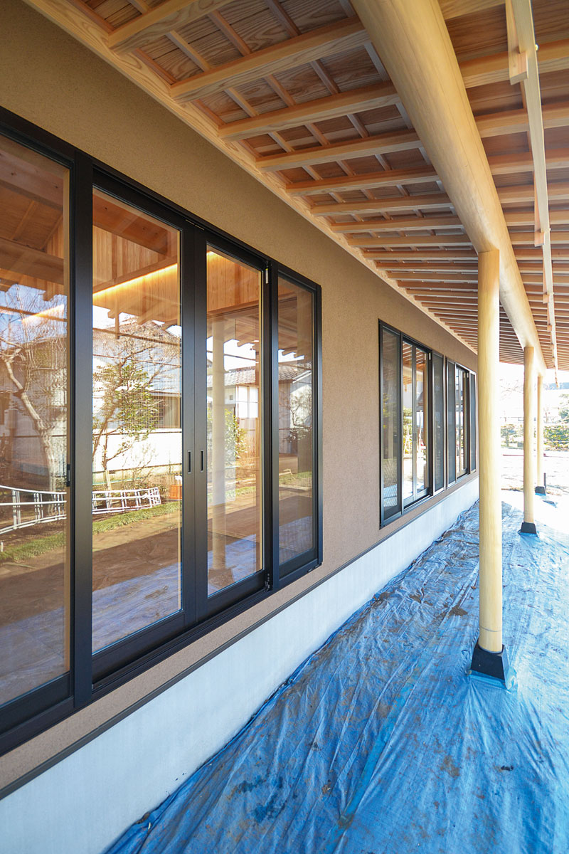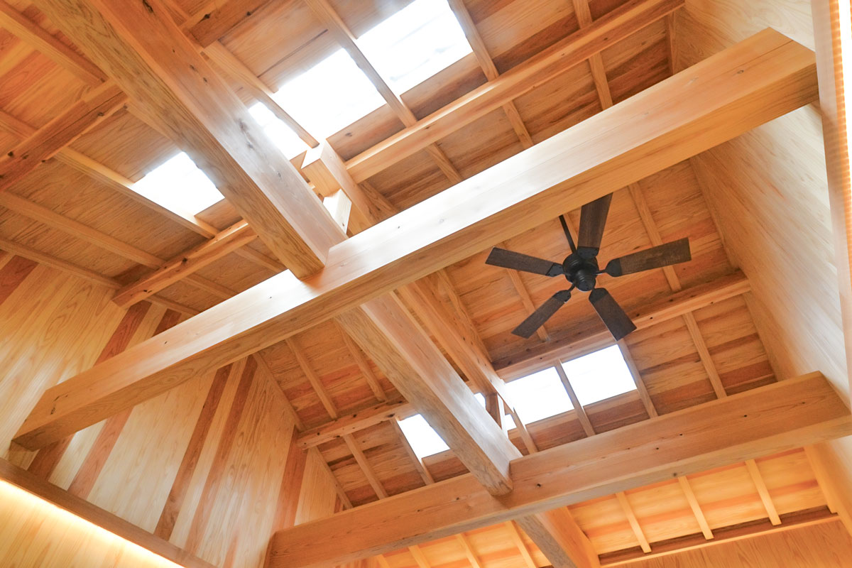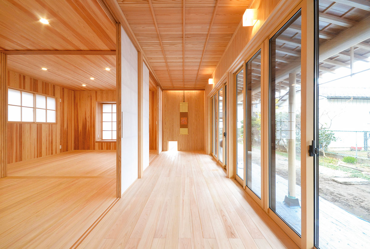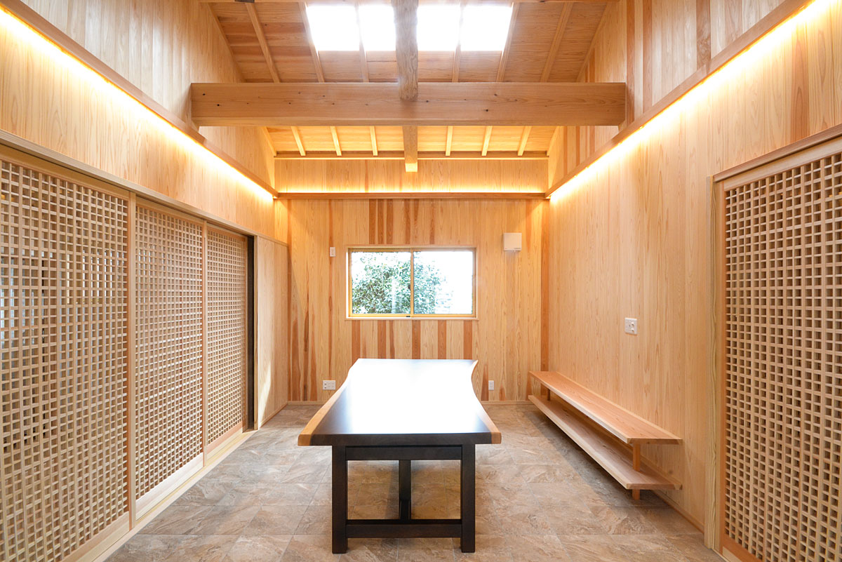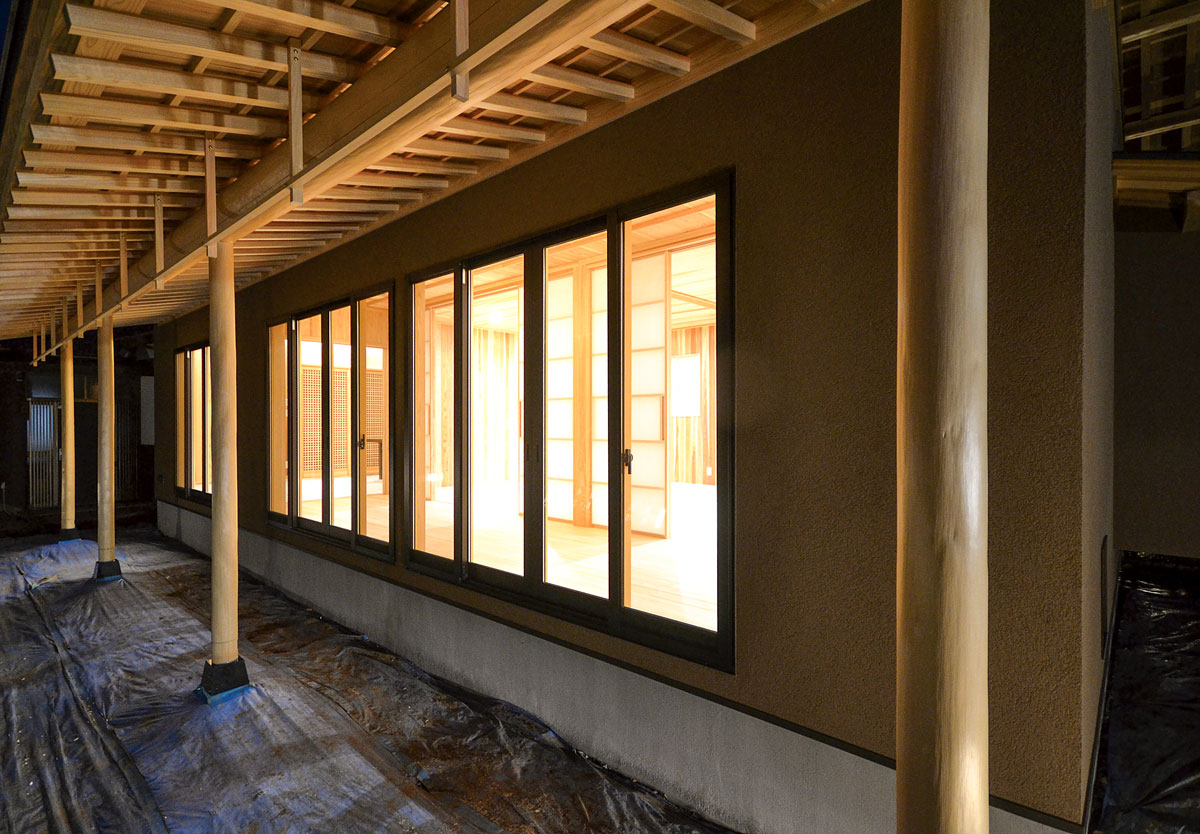 建具をはじめ、細部まで拘り抜いた住宅です。 丸太は、北山杉(約13メートル)のものを、床には檜をふんだんに使用しています。