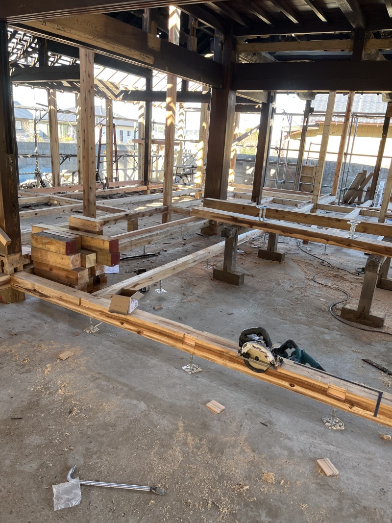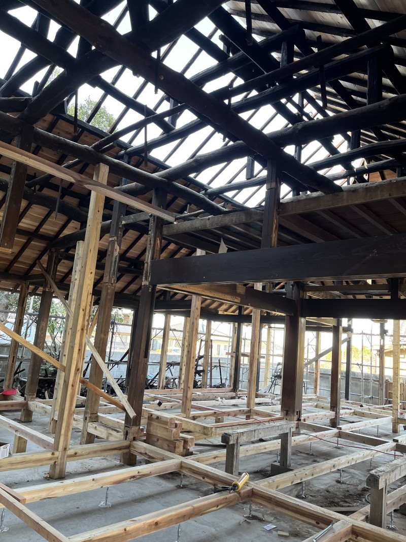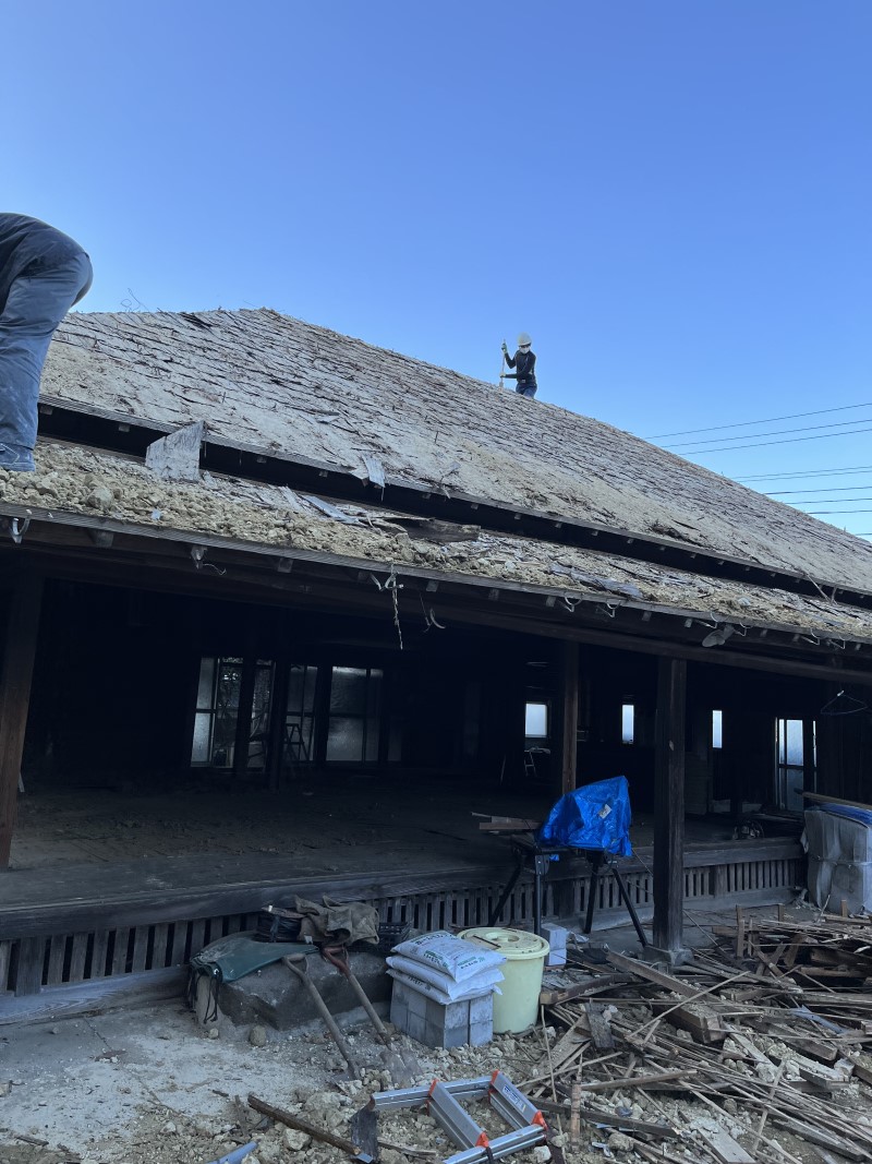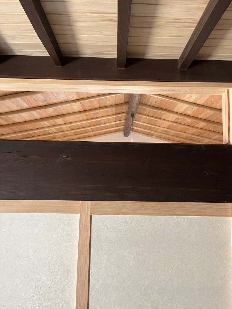 古民家をフルリフォーム。屋根は瓦からガルバリウムに、天井は船底天井に仕上げ、思い出の梁はそのままにリノベーションしました。